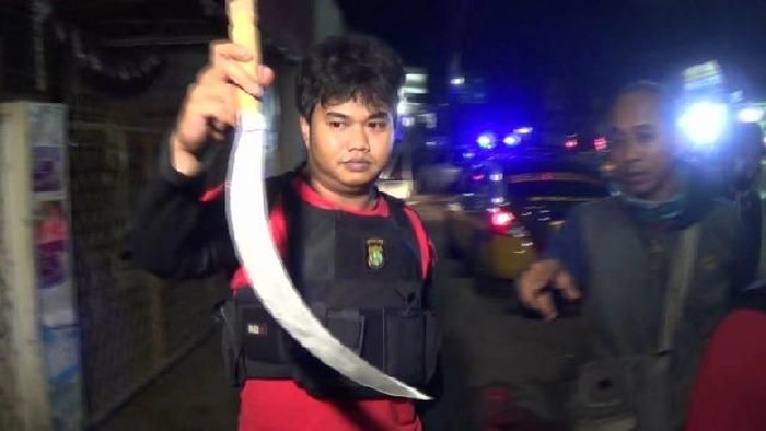 "Kita lakukan penggeledahan. Dan hasil penggeladahan ditemukan 2 sajam jenis celurit," tambahnya.