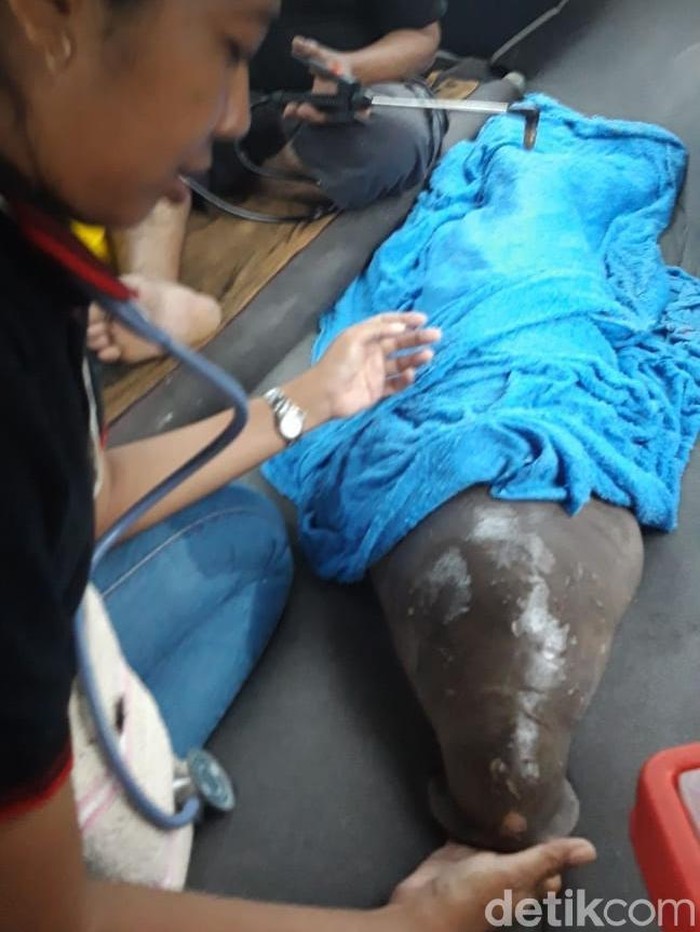 Pertimbangan kenapa tidak langsung dikembalikan ke laut, selain penuh luka, hewan tersebut menurutnya masih bayi dan masih menyusui. Dalam proses perawatan, mamalia ini katanya akan dikarantina.