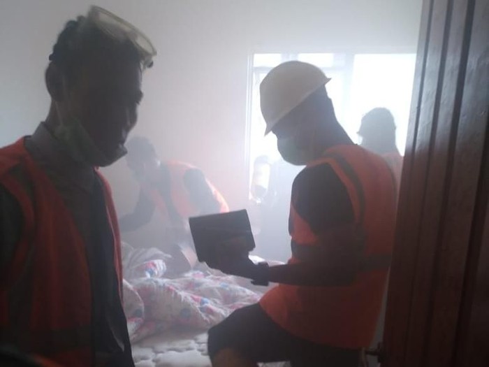 "Diduga karena kebocoran tabung gas," kata seorang petugas jaga saat dihubungi pukul 09.10 WIB.