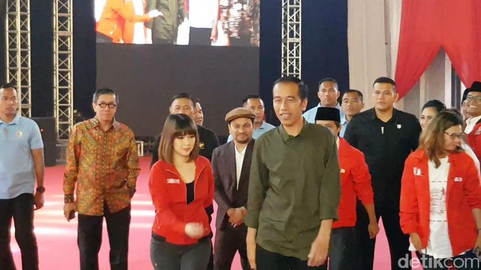 Jokowi nampak bergaya santai mengenakan baju kemeja warna hijau tua dengan celana hitam. Acara ini dihadiri pula oleh Menteri Koordinator Bidang Politik Hukum dan Keamanan Wiranto dan Menteri Hukum dan HAM Yasonna Laoly.
