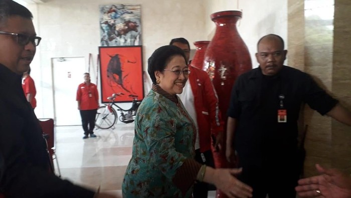 Megawati tiba di Kantor DPP PDIP, Jalan Diponegoro, Menteng, Jakarta Pusat pukul 12.51 WIB, Kamis (15/11/2018). Dia disambut Sekjen PDIP Hasto Kristyanto dan elite PDIP lainnya, Putra Nababan.