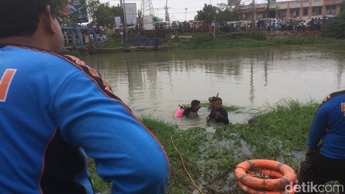 Seorang penyelam lalu kembali turun ke kali. Hingga pukul 14.53 WIB, pencarian masih berlangsung.