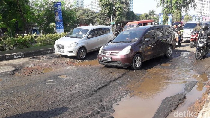 "Sementara untuk perbaikan sifatnya sementara dipasang batu bata. Yang berlubang ditambal. (Aspal yang terangkat) menggunakan (metode) overlay aspal (tambahan lapisan aspal)," ujar Arief.