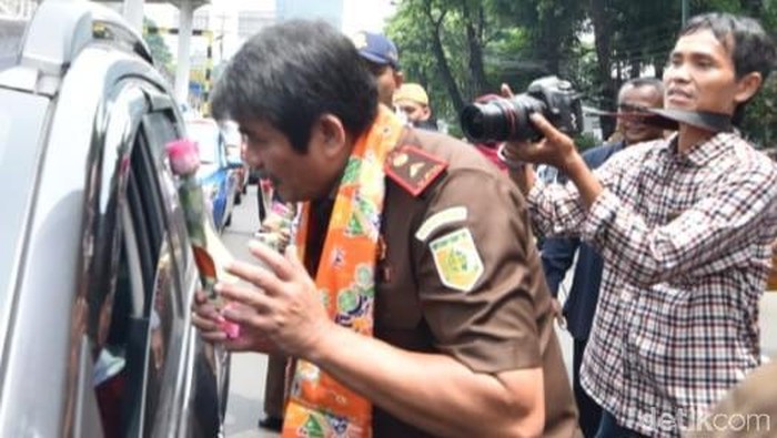 Di Jakarta, aksi ini dilakukan Kejaksaan Tinggi DKI Jakarta (Kejati DKI), di Jl HR Rasuna Said, Jakarta Selatan. Mereka membagikan bunga ke para pengendara mobil dan motor.