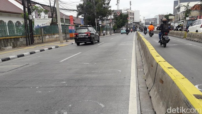 Pantauan detikcom, sejumlah lingkaran putih berada di pertigaan Jalan Jatinegara Barat, tepatnya depan Bank Danamon. 5 lingkaran berada di jalur buswas, sedangkan 4 lingkaran berada di jalan arteri.