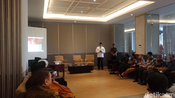 "Jadi intinya kita memang sengaja mengundang para tokoh agama, pimpinan majelis agama, para pemuka agama, budayawan. Kita mintai masukannya ke kami di Kementerian Agama melakukan refleksi perjalanan kehidupan keagamaan. Jadi refleksi itu penting sebagai proyeksi kita memasuki kehidupan di tahun 2019 nanti," ujar Menteri Agama Lukman Hakim Syaifuddin di Hotel Discovery, Ancol, Jakarta Utara, Jumat (28/12/2018).
