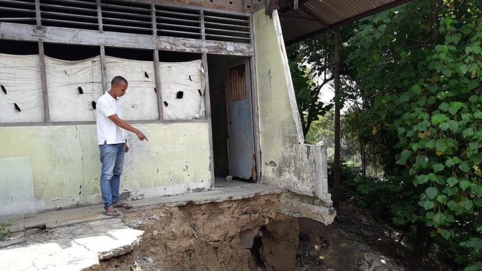 "Iya jelas waswas. Tengah malam kita nggak tidur begadang. Anak istri pindahin ke depan (ruang tamu). Setiap musim hujan, saya nggak tenang," ujar Muhari.