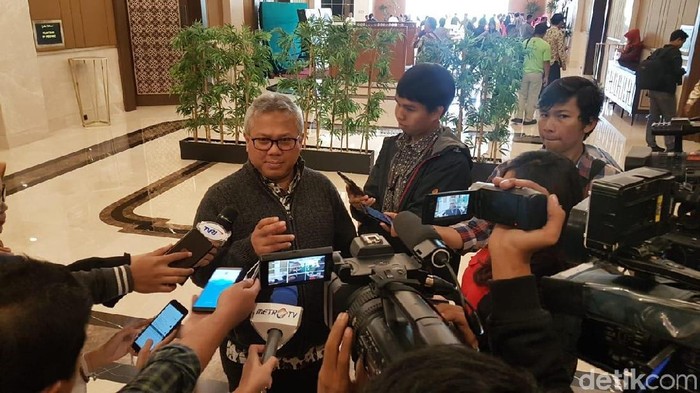 "Pendukung-pendukung yang nggak bisa masuk ruangan, sudah kita siapkan nobar di Parkir Timur Senayan," ujar Ketua KPU Arief Budiman di The Sultan Hotel, Jl Gatot Subroto, Jakarta Pusat, Kamis (7/2/2019).