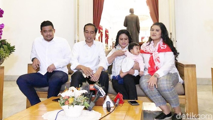 Selain Iriana, ada putri Jokowi, Kahiyang Ayu, dan suaminya, Bobby Nasution, serta cucu Jokowi, Sedah Mirah, yang dipangku Iriana.