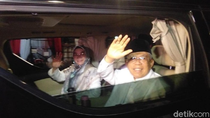 Ma'ruf tampak didampingi istri saat berada di dalam mobil Alphard hitam dengan pelat nomor B-5-RMA, yang mengantarnya ke Hotel Sultan. Tidak ada pernyataan yang disampaikan Ma'ruf ke awak media. Dia hanya melambai sembari tersenyum.