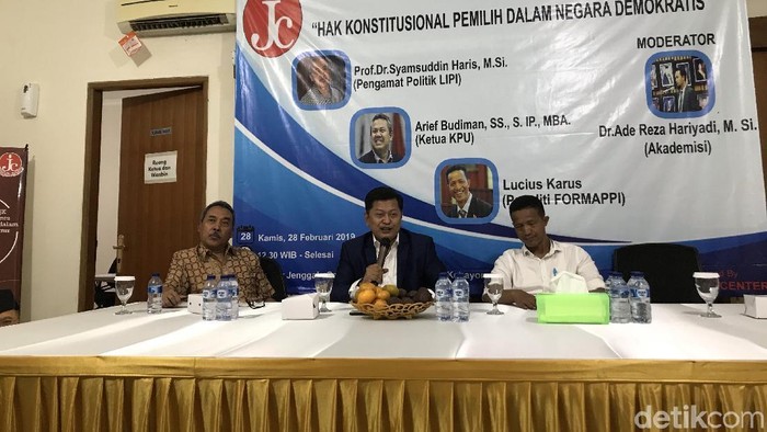 "Jadi ini bukan sesuatu yang tiba-tiba sifatnya, ini akumulasi kegagalan pendidikan politik yang semestinya dilakukan partai politik, negara, dan civil society. Pendidikan politik dalam arti luas, pendidikan pemimpin, pendidikan wawasan kebangsaan, pendidikan cinta tanah air, dan sebagainya," kata Syamsuddin dalam diskusi 'Hak Konstitusional Pemilih Dalam Negara Demokratis' di Jenggala Center, Jl Erlangga V No 26, Kebayoran Baru, Jakarta Selatan, Kamis (28/2/2019).