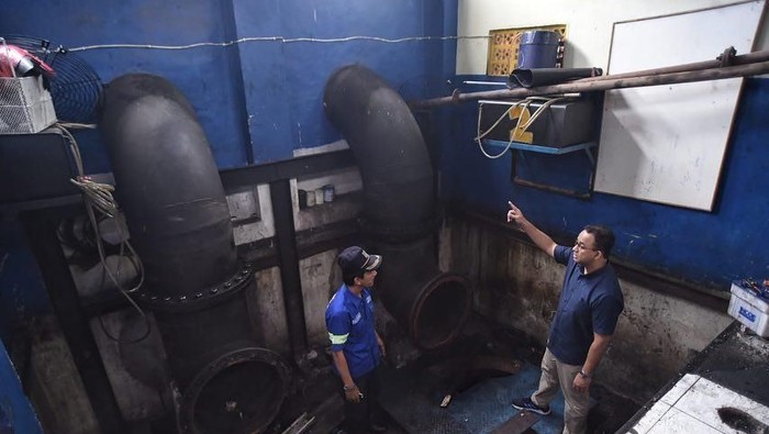 Setelah itu, Anies melanjutkan pengecekan ke Pintu Air Marina, Ancol, Jakarta Utara. Anies ingin memastikan pompa air bekerja saat musim hujan di Jakarta.