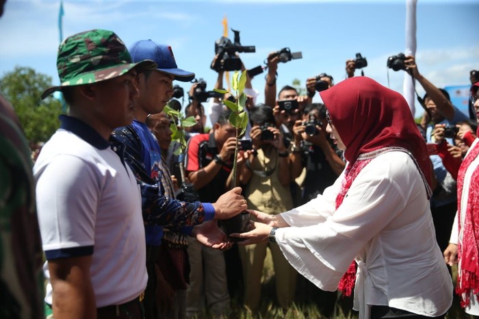 Acara penanaman 5 ribu pohon mangrove tersebut juga dilaksanakan secara barsama-sama oleh TNI, Polri, Pemerintah Daerah dan masyarakat sekitar.