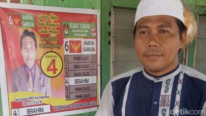 "Saya orang nggak punya, tapi mendapat dukungan dari masyarakat. Yah, awalnya saya tidak mau dan masyarakat dukung," kata Ibrahim saat ditemui di rumahnya di Jalan Kopral Dahri Sembayu Palembang, Kamis (28/3/2019).
