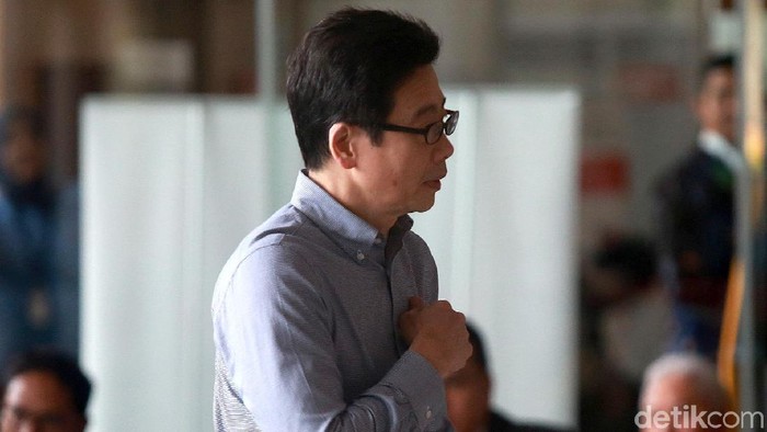 Samin menyudahi pemeriksaan pada pukul 18.22 WIB, Kamis (28/3/2019), di KPK. Pria berkacamata itu terlihat selalu menunduk menghindari sorotan kamera wartawan.