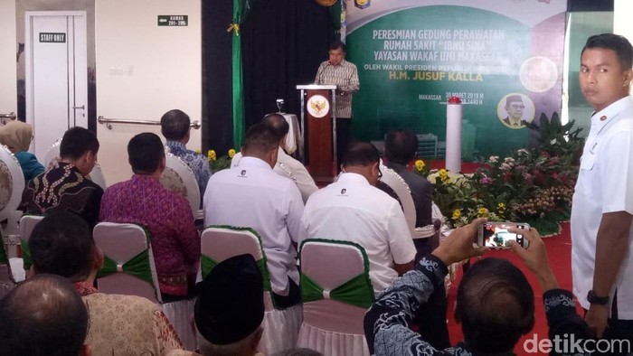 "Khususnya di Makassar, kita tahu semua, apalagi satu keunggulan di Makassar, kesehatan terbaik di Indonesia timur, pusat pelayanan rujukan, karena kita semua mempunyai rujukan di Jakarta dan luar negeri," kata Wapres JK di RS Ibnu Sina, Jalan Urip Sumoharjo, Sabtu (30/3/2019).