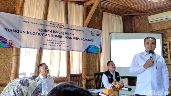 "Saya melihat ini momentum, ketika BNP2TKI yang sudah 12 tahun ini, sebentar lagi kita akan berakhir. Akan ada badan baru. Karena Undang-Undang 39/2004 itu is not longer karena sudah dinyatakan sudah berakhir dengan munculnya Undang-undang Nomor 18 tahun 2017," kata Sekretaris Utama BNP2TKI Tatang Budie Utama Razak di Gubug Udang Situ Cibubur, Jl Alternatif Cibubur No 4, Jakarta, Kamis (4/4/2019).