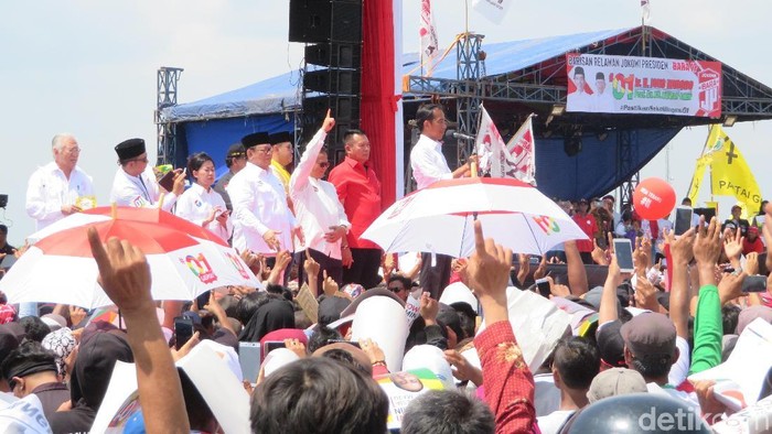 "Di catatan saya, di Kabupaten Cirebon tahun 2014 kita mendapatkan 61 persen, itu 2014. Tahun 2019 kita ingin di Cirebon di atas 75 persen, siapa yang setuju tunjuk jari. Di Kota Cirebon dan di Kabupaten Cirebon ya," kata Jokowi kepada pendukungnya yang memadati lapangan dekat Pelabuhan Perikanan Gebangmekar, Cirebon Jawa Barat, Jumat (5/4/2019).