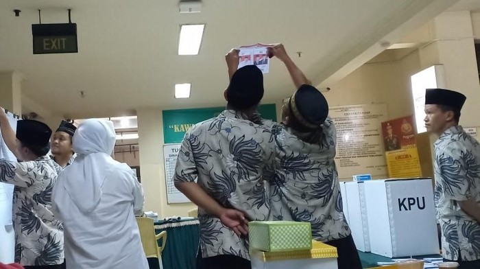 "Hasil suaranya, Jokowi-Ma'ruf 107 suara dan Prabowo-Sandiaga 121 suara," kata Ketua KPPS TPS 14, Syahroni.