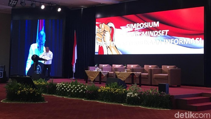 "Tiga ancaman yang paling berbahaya ancaman (perang) mindset untuk ubah ideologi Pancasila. Pancasila itu alat pemersatu, kalau pemersatu pecah, ya pecah negara ini, bangsa ini harus paham," ucap Ryamizard dalam sambutan simposium 'Perang Mindset Pada Era Keterbukaan Informasi' di Kantor Kementerian Pertahanan, Jalan Medan Merdeka Barat, Rabu (8/5/2019).