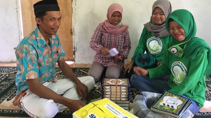 Di Desa Tenggelang, tiga wanita ini menyerahkan bantuan mesin pompa air, perlengkapan listrik serta sejumlah Al Quran di Masjid Al Ichawan Takwa Paropo, Dusun Baro-Baro.