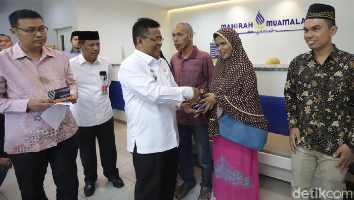Santunan rutin tahunan itu diserahkan Wali Kota Banda Aceh Aminullah Usman kepada ke-174 penerima di kantor PT Mahirah Muamalah Syariah (MMS) di kawasan Simpang Lima, Banda Aceh, Rabu (29/5/2019). Para penerima diberikan buku rekening MMS yang sudah terisi bantuan masing-masing Rp 4 juta.
