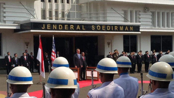 Upacara penyambutan rombongan Plt Menhan AS, Patrick Michael Shanahan. (Audrey/detikcom)