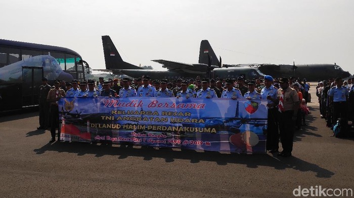 Pantauan detikcom, rombongan diberangkatkan dari Lanud Halim Perdana Kusuma, Jakarta Timur, Sabtu (1/6/2019), pukul 09.45 WIB dengan 2 pesawat Hercules dan 1 pesawat CN295. Setelah mendapat arahan, terlihat para anggota dan keluarga menaiki pesawat.