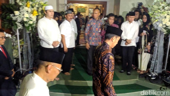Jokowi datang sebelum jenazah tiba di rumah duka. Jenazah masih dalam perjalanan dari Lanud Halim Perdanakusuma.
