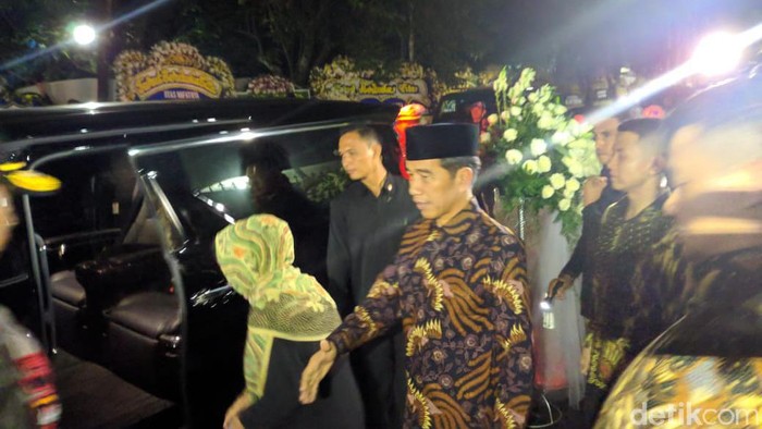 Pantauan detikcom, Jokowi dan Iriana terlihat keluar dari tempat jenazah disemayamkan di kediaman SBY di Cikeas, Gunung Putri, Bogor, Jawa Barat, Sabtu (1/4/2019) pukul 23.43 WIB. Dia tampak menyalami para pelayat sebelum keluar.