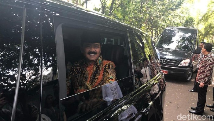 Pantauan detikcom, Hadi tiba di kediaman Megawati, Jalan Teuku Umar, Menteng, Jakarta Pusat, Rabu (5/6/2019), pukul 10.25 WIB. Hadi tampak mengenakan kemeja batik lengan panjang dan peci hitam. Hadi menebar senyum saat tiba.