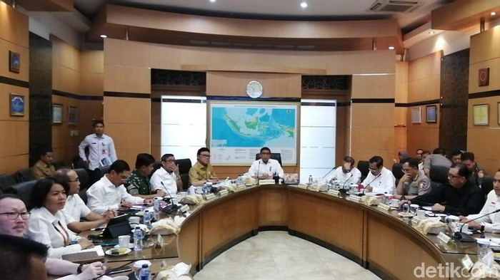 Pantauan di Kemenko Polhukam, Jalan Medan Merdeka Barat Nomor 15, Jakarta Pusat, Senin (10/6/2019), rapat dimulai sekitar pukul 10.30 WIB. Kapolri Jenderal Tito Karnavian hingga Panglima TNI Marsekal Hadi Tjahjanto hadir langsung.