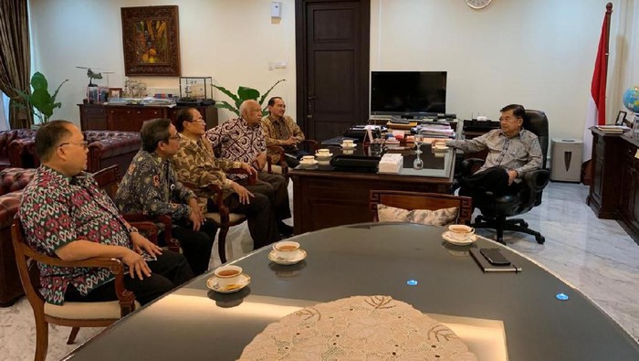 Kegiatan halalbihalal tersebut digelar di Kantor Wapres, Jalan Medan Merdeka Utara, Jakarta Pusat, Senin (10/6/2019). Syafruddin ikut hadir menyusul di ruangan JK.