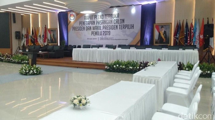 Penetapan presiden dan wakil presiden terpilih Pilpres 2019 akan dilakukan sore nanti sekitar pukul 15.30 WIB. Direncanakan, pasangan Joko Widodo dan Ma'ruf Amin akan hadir. Sedangkan pasangan Prabowo Subianto-Sandiaga Uno disebut tidak akan hadir.