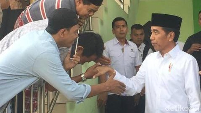 Usai salat, Jokowi ditunggu oleh jamaah untuk bersalaman dan berfoto bersama. Para jamaah berkumpul di sisi jalan yang dilewati Jokowi untuk bersalaman. Banyak dari mereka yang menyiapkan ponsel berkamera untuk foto bersama.