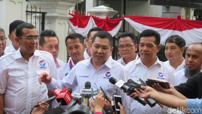"Kami Partai Perindo secara resmi bersama-sama dengan kawan-kawan pengurus menyampaikan ucapan selamat atas terpilhnya kembali beliau (Jokowi), dan tentunya menegaskan komitmen dari Partai Perindo bahwa akan tetap mendukung, ikut ambil bagian dalam setiap kebijakan beliau supaya maksimal," kata Ketum Perindo Hary Tanoesoedibjo (HT) setelah menemui Jokowi di Istana Bogor, Senin (22/7/2019).
