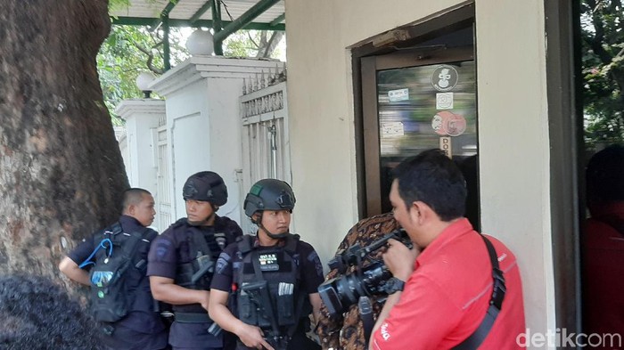 Pantauan di depan kediaman Megawati, Jalan Teuku Umur Nomor 27, Gondangdia, Jakarta Pusat, Rabu (24/7/2019) sekitar pukul 10.30 WIB, sejumlah personel kepolisian tampak berjaga. Sedangkan di depan pintu masuk, beberapa anggota Brimob bersenjata lengkap juga bersiaga.
