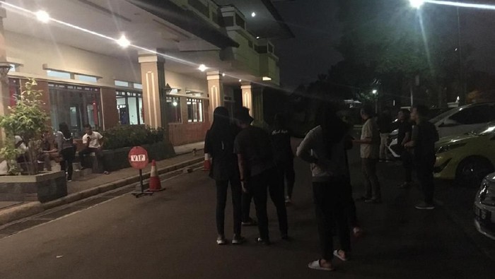 Pantauan detikcom di Hotel Padepokan Pencak Silat TMII, Jakarta Timur, Jumat (2/8/2019), orang berhamburan keluar dari gedung sekitar pukul 19.00 WIB. Beberapa dari mereka berteriak 'gempa'.