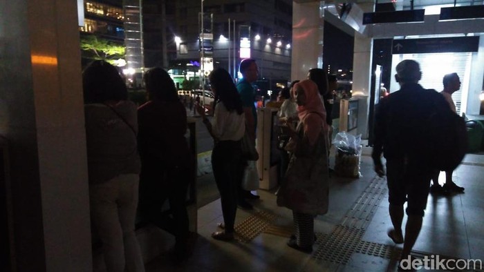 Kondisi listrik padam di sebagian besar Pulau Jawa turut berimbas ke layanan TransJakarta. Di Halte Harmoni Sentral, penumpang mengaku kegerahan di tengah kegelapan karena kipas di halte tersebut mati.