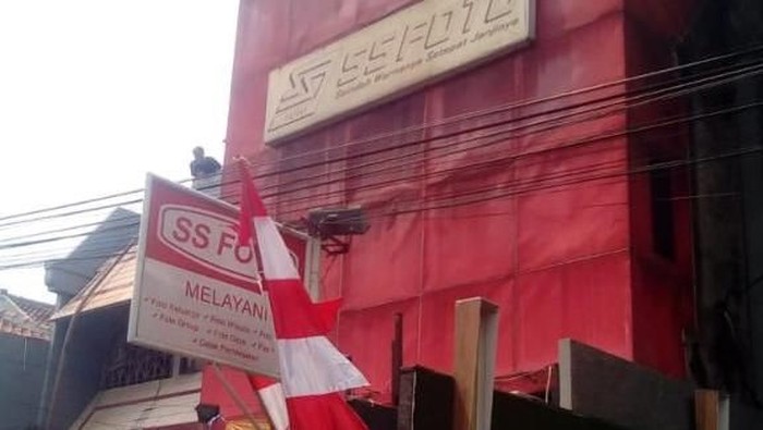 Kebakaran terjadi di 'SS Foto' di Jalan Raya Jatiwaringin, Pondok Gede, Kota Bekasi, Senin (12/8) pukul 10.45 WIB. Kebakaran diduga akibat korsleting listrik.