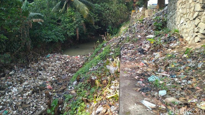 Pantauan detikcom, Jumat (6/9/2019) tumpukan sampah masih terlihat di perairan Kalibaru, Jalan Raya Jakarta-Bogor, Cibinong, Kabupaten Bogor, tepatnya di seberang Hotel Taman Cibinong II. Tidak ada satupun petugas kebersihan yang membersihkan lokasi tersebut.