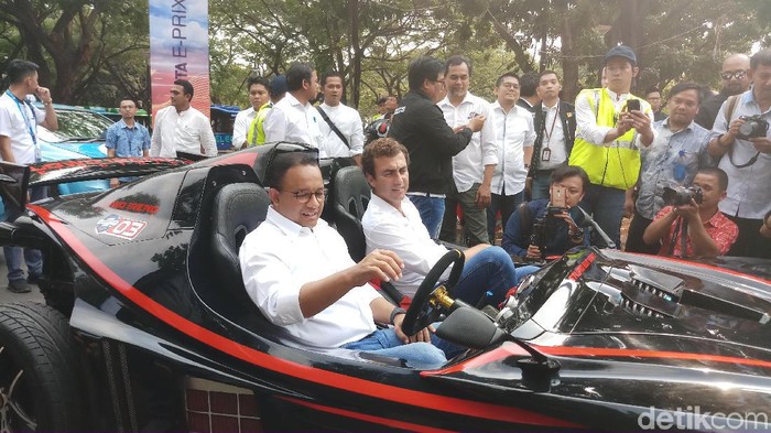 Pantauan detikcom, di Lapangan Parkir Timur GBK, Senayan, Jakarta, Jumat (20/9/2019), Anies tampak menjajal beberapa kendaraan listrik. Mulai dari mobil hingga motor yang dipajang di lokasi.
