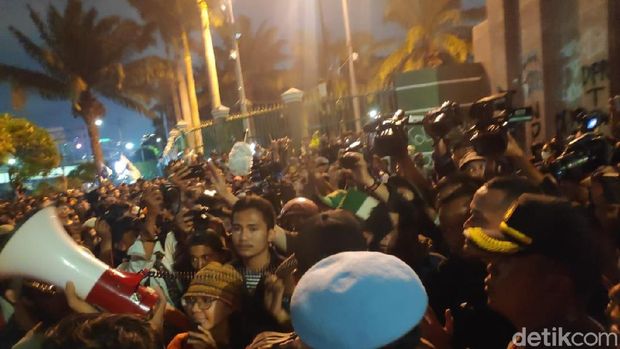 Pantauan di lokasi, aksi ini terjadi sekitar pukul 19.10 WIB, Senin (23/9/2019). Mereka juga berteriak meminta polisi bersikap mengayomi.