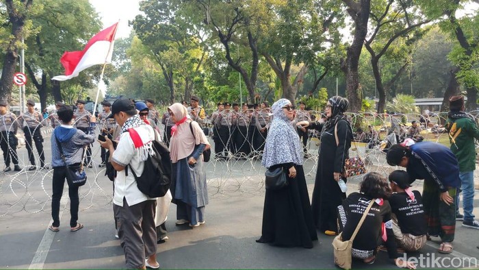 Pantauan detikcom, Sabtu (28/9/2019), di lokasi tampak dipasang pengaman berupa kawat berduri. Selain itu juga ada 3 water canon, 1 barracuda, dan 1 mobil raisa.