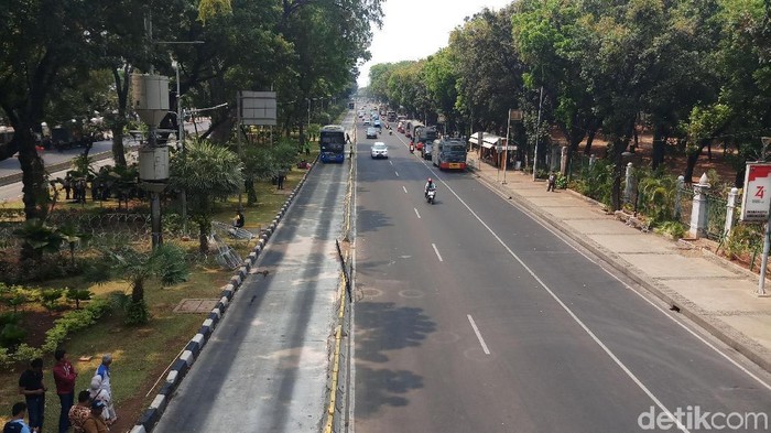 Pantauan detikcom di Jalan Medan Merdeka Barat, sekitar pukul 13.25 WIB, Sabtu (28/9/2019), kendaraan bisa melintasi Jalan Medan Merdeka Utara depan Istana Kepresidenan. Kendaraan dari Jalan Veteran pun bisa lewat menuju Jalan Medan Merdeka Barat.