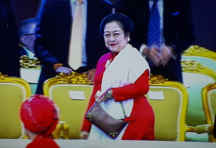 Pantauan detikcom di Kompleks Parlemen, Senayan, Jakarta Pusat, Selasa (1/10/2019), Megawati tampak memakai baju kebaya bernuansa merah dengan gaya rambut disanggul. Sementara Surya Paloh memakai jas hitam. Surya Paloh duduk bersebelahan dengan wapres terpilih Ma'ruf Amin.