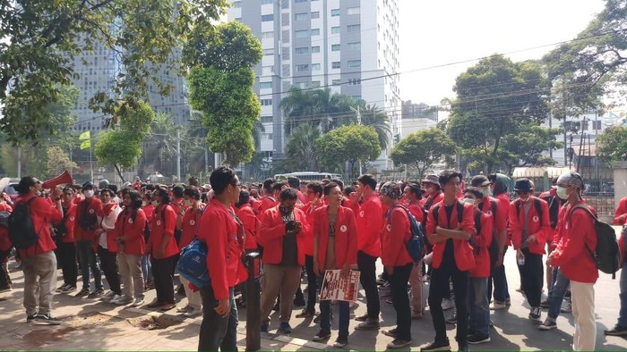 Pantauan detikcom, Selasa (1/10/2019), massa mahasiswa sudah banyak berkumpul di belakang gedung DPR, tepatnya di Jalan Tentara Pelajar, Palmerah. Tampak mahasiswa dari sejumlah kampus di antaranya Universitas Mercubuana, Universitas Ibnu Khaldun Bogor dan Universitas Pakuan Bogor.
