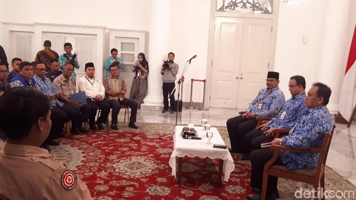 Pantauan detikcom, acara dilakukan di Balai Kota DKI Jakarta, Jl Medan Merdeka Selatan, Jakarta, Selasa (1/10/2019). Acara dihadiri oleh Direktur Manajemen Penanggulangan Bencana dan Kebakaran Kemendagri Syafrizal, Sekda DKI Jakarta Saefullah dan Kepala Badan Penanggulangan Bencana Daerah (BPBD) DKI Jakarta Subejo.