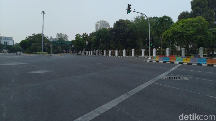 |  Jalan di depan Istana ditutup jelang demo buruh, Rabu (2/10/2019) Foto: Sachril Agustin Berutu-detikcom |