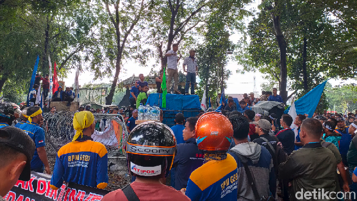 Massa menyatakan terpilihnya kembali Joko Widodo (Jokowi) sebagai presiden menjadi penanda harapan dari buruh dan masyarakat.